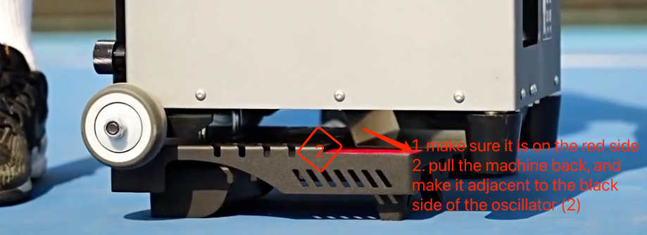 - Place the ball machine so the silver metal plate on the base rests on the red side of the oscillator.